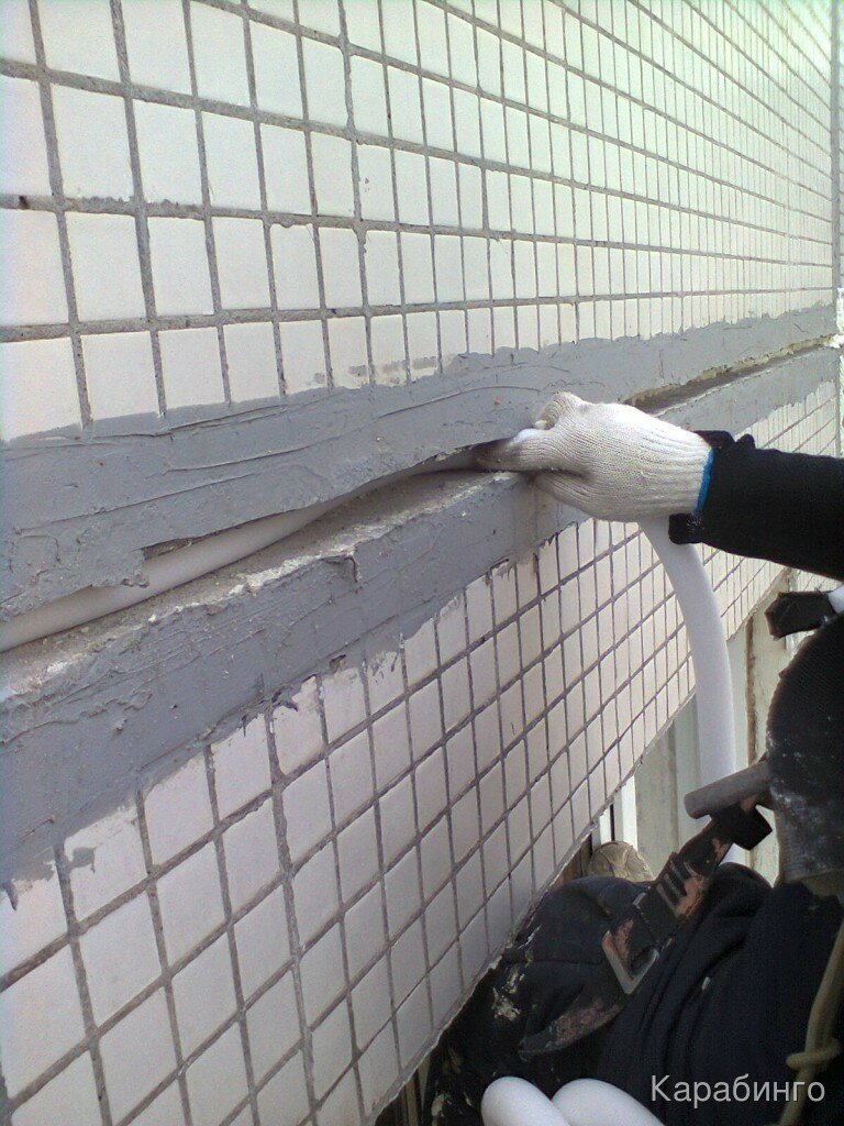- Затем поверх установленной специальной прокладки нужно нанести слой мастики либо герметика. Гидроизолирующий материал необходимо нанести таким образом, чтобы межпанельный шов не выступал бугром.