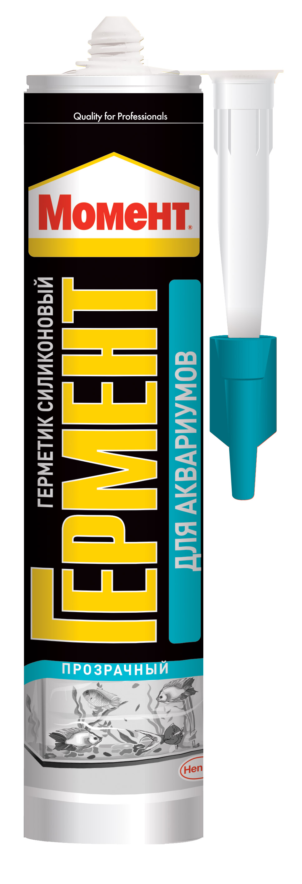 - Момент Гермент. 100% силиконовое средство, идеально для аквариумов, террариумов. Выдерживает контакт даже с морской водой, надежно герметизирует стыки, в том числе, подверженные вибрации. Может применяться на обычном, ламинированном, глазурованном стекле.