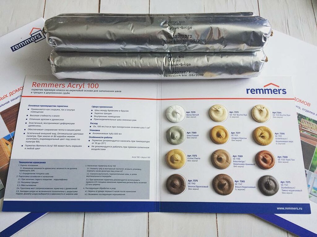 Реммерс Акрил 100 — герметик премиум класса для заделки швов между деревянными элементами зданий, трещин, неровностей и любого вида стыков. Кроме дерева с герметиком можно работать на иных материалах с низкой пористостью, например, гипсовых поверхностях или рельефных деталях, пенобетонных стенах. После высыхания герметик можно окрашивать красками на водной основе. Используется акриловый герметик Remmers Acryl 100 как для наружных, так и для внутренних работ.