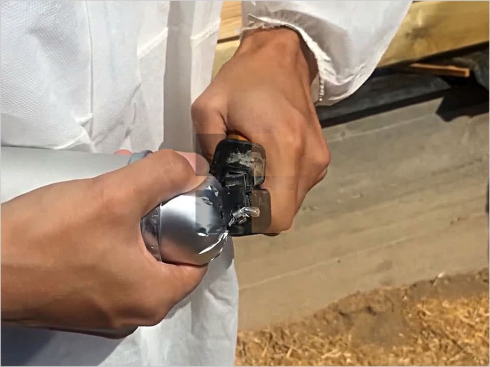 ΠΡΠ΅Π΄Π²Π°ΡΠΈΡΠ΅Π»ΡΠ½ΠΎ ΠΎΡΠΊΡΡΠ²Π°Π΅ΡΡΡ ΡΡΠ±ΠΈΠΊ, ΡΡΠ΅Π·Π°Π΅ΡΡΡ ΠΊΠΎΠ½ΡΠΈΠΊ ΠΈ ΡΡΡΠ°Π½Π°Π²Π»ΠΈΠ²Π°Π΅ΡΡΡ ΡΠΏΡΠΈΡ-Π½Π°ΡΠ°Π΄ΠΊΠ°. Π Π°Π·ΠΌΠ΅Ρ ΠΎΡΠ²Π΅ΡΡΡΠΈΡ Π½Π° ΠΊΠΎΠ½ΡΠ΅ ΡΡΠ±ΠΈΠΊΠ° Π΄Π΅Π»Π°Π΅ΡΡΡ Ρ ΡΡΠ΅ΡΠΎΠΌ ΡΠΎΠ»ΡΠΈΠ½Ρ ΡΠ²Π°. ΠΠ»Ρ ΡΠ½ΠΈΠΆΠ΅Π½ΠΈΡ Π΄Π°Π²Π»Π΅Π½ΠΈΡ Π²Π½ΡΡΡΠΈ ΡΡΠ±ΠΈΠΊΠ° ΠΈ ΠΏΡΠ΅Π΄ΠΎΡΠ²ΡΠ°ΡΠ΅Π½ΠΈΡ Π²ΡΡΠ΅ΠΊΠ°Π½ΠΈΡ, ΡΠ»Π΅Π΄ΡΠ΅Ρ Π½Π°ΠΆΠ°ΡΡ ΡΡΡΠ°Π³, ΡΠ°ΡΠΏΠΎΠ»ΠΎΠΆΠ΅Π½Π½ΡΠΉ Π½Π°Π΄ ΠΊΡΡΠΊΠΎΠΌ. ΠΠ° ΠΊΠΎΠ½ΡΠΈΠΊ Π½Π°ΠΊΡΡΡΠΈΠ²Π°ΡΡ ΠΊΠΎΠ»ΠΏΠ°ΡΠΎΠΊ, ΡΡΠΎΠ±Ρ Π³Π΅ΡΠΌΠ΅ΡΠΈΠΊ Π½Π΅ Π²ΡΡΡΡ Π°Π».