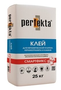 Клей для керамической плитки Perfekta (Перфекта) СТАРТФИКС БАЗИС предназначен для облицовки стен и полов керамической плиткой и керамогранитом весом до 350г/100см². Наносится на стандартные (бетонные, оштукатуренные, кирпичные) и другие недеформирующиеся основания (пено- и газобетон, ГКЛ и ГВЛ, ЦСП, СМЛ).