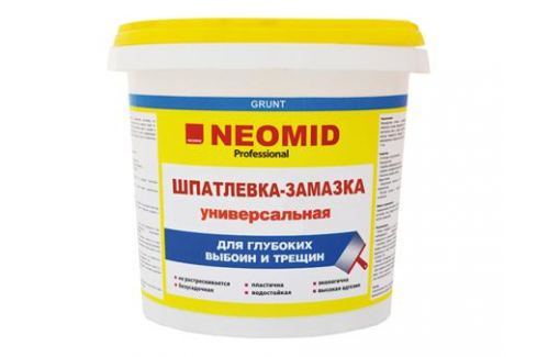 Шпаклевка – замазка торговой марки Неомид очень удобна в работе и помогает значительно ускорить все технологические процессы при заделке трещин, щелей и стыков в бетонных и гипсокартонных потолках. Особенно это актуально при выполнении ремонтных работ в старых изношенных домах панельной и кирпичной застройки.