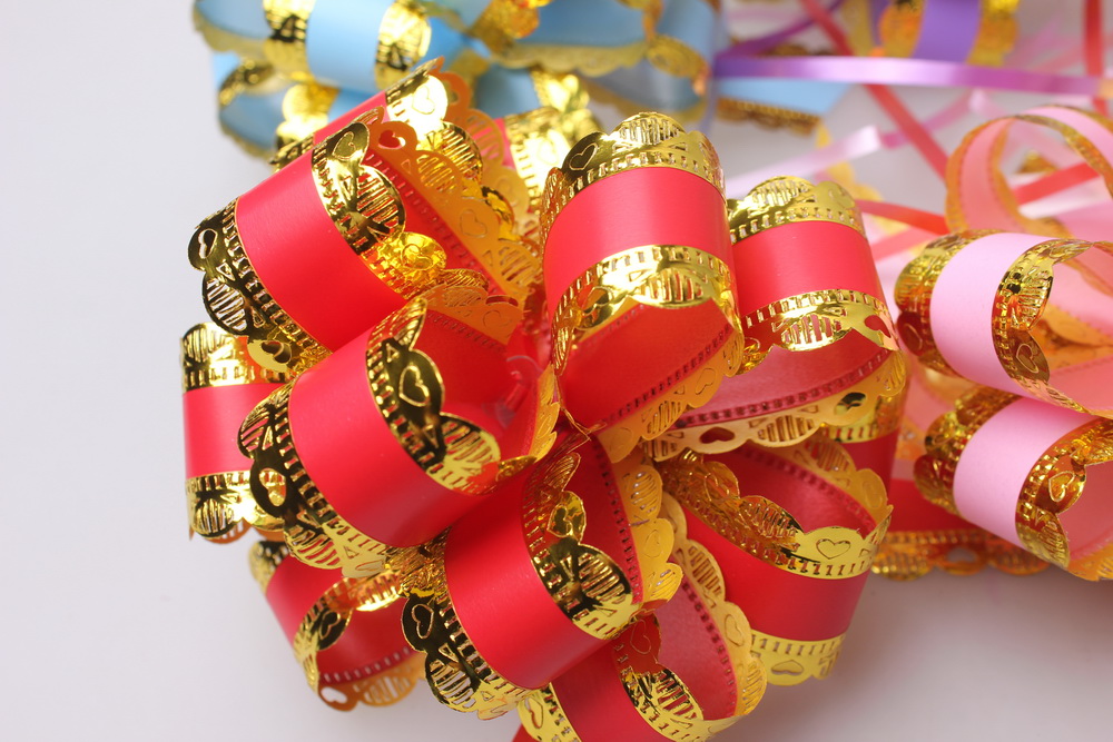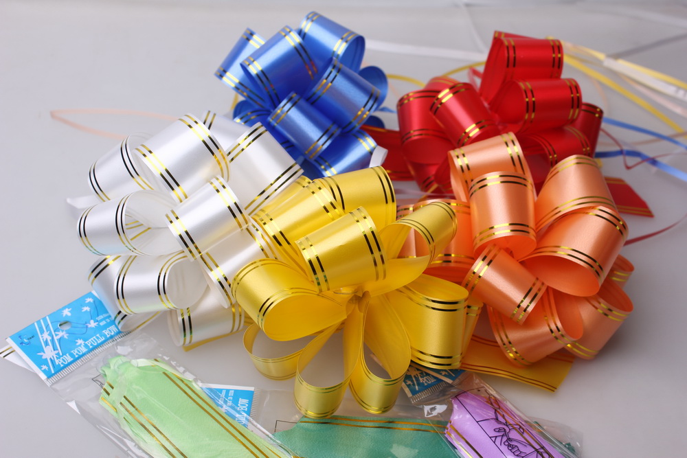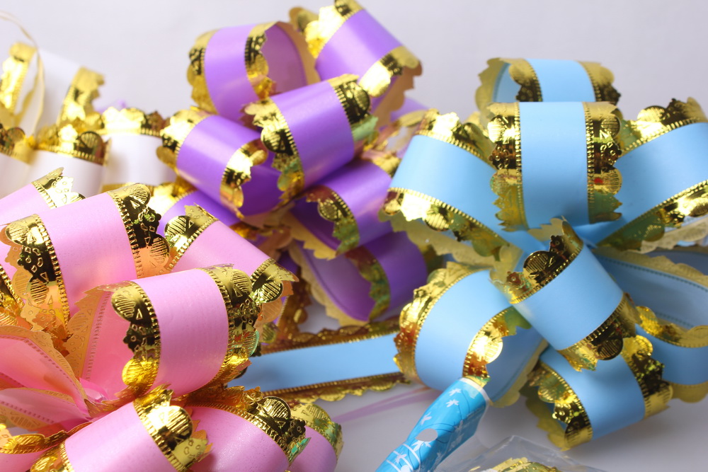 К примеру, если бантик будет украшать букет, то его цвет и фактура должны сочетаться с общей упаковкой или цветами.