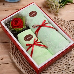 Цветные полотенца с рисунком лучше упаковать в однотонную коробку, а вот если вы выбрали гладкокрашеный текстиль, то упаковку можно выбрать поярче.